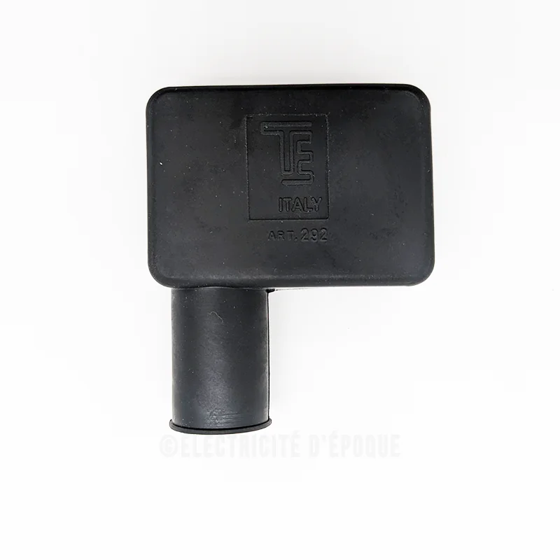 Capot caoutchouc noir fût transversal à gauche pour cosse de masse sertie à gauche.