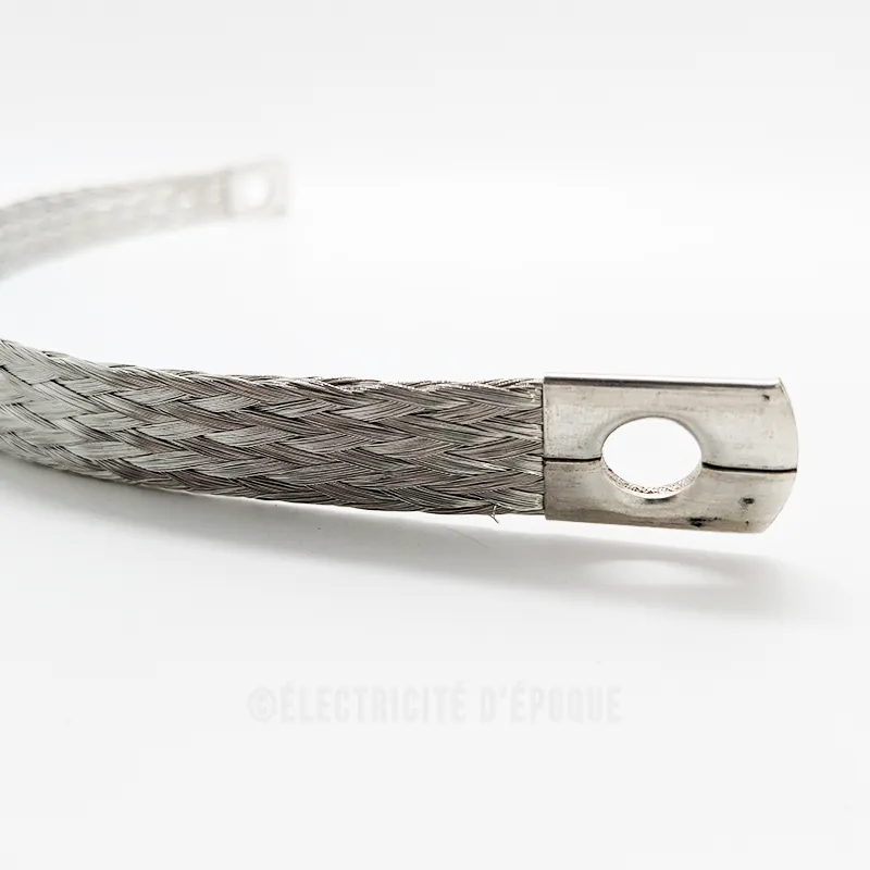 Tresse cuivre étamé à 2 embouts trous diamètre 8mm.
