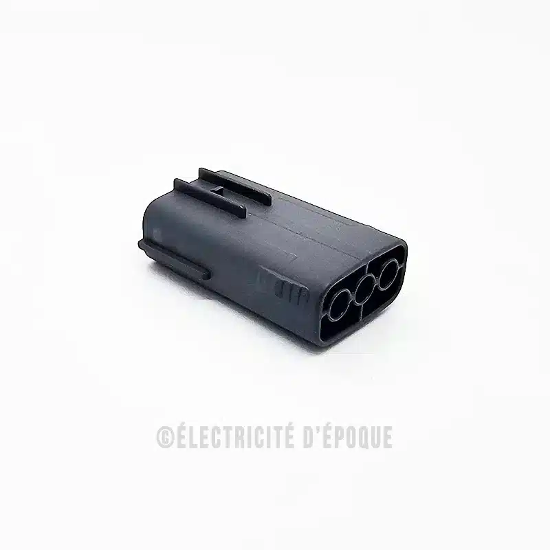 Ce modèle est compatible avec des câbles de 0,3 à 0,85 mm² (18–22 AWG) et se monte avec des bornes mâles 2,3 mm à sertir. Il s’accouple avec le 3p (version femelle) pour former une connexion fiable et étanche de type IP67.Ils sont souvent utilisés pour les capteurs, bobines d’allumage, injecteurs, phares, et autres éléments électriques des véhicules.