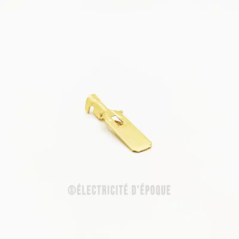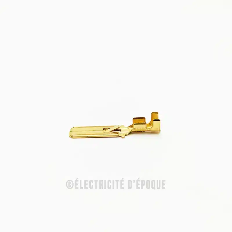 Cosse nue en laiton ou étamée. Ce sont les cosses de type origine, installées par les constructeurs. Elles sont à sertir avec les bons embouts en fonction de la section du fil utilisé. Les cosses étamées sont soudables facilement. On les reconnaît à leur aspect gris. Pour isoler ces cosses, il faut les embouts en caoutchouc correspondant ou utiliser de la gaine thermorétractable.