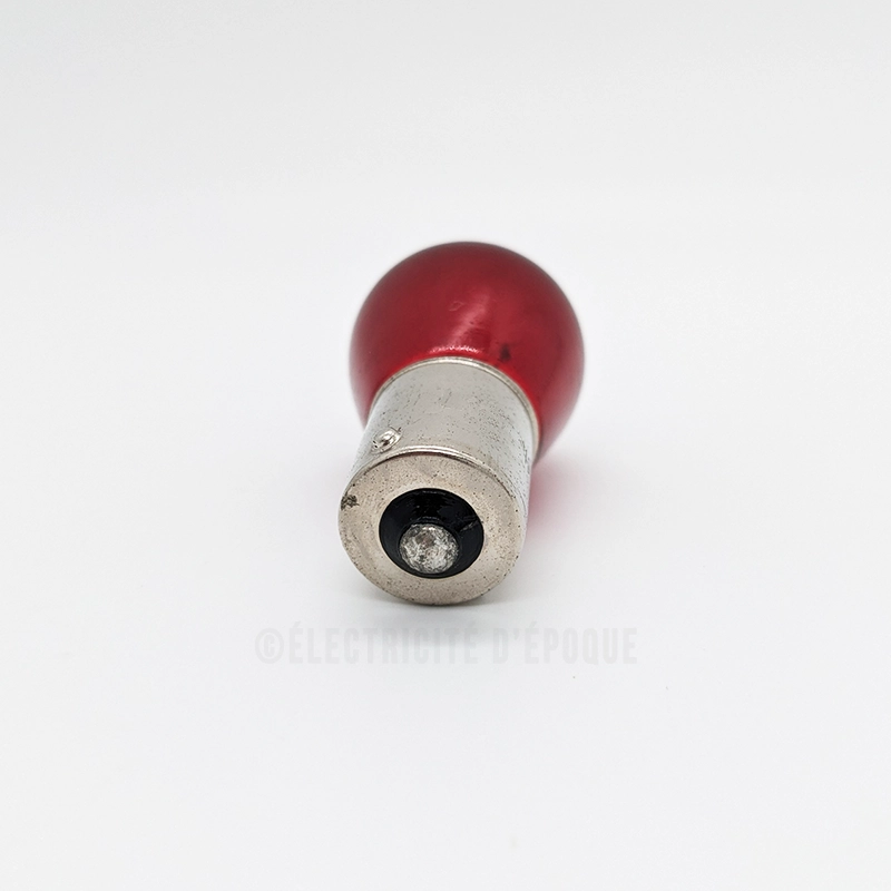 Ampoule rouge 12V 21W à culot BA15s de diamètre 15mm à 2 ergots pour feu clignotant, stop et antibrouillard de vehicule ancien 12V.