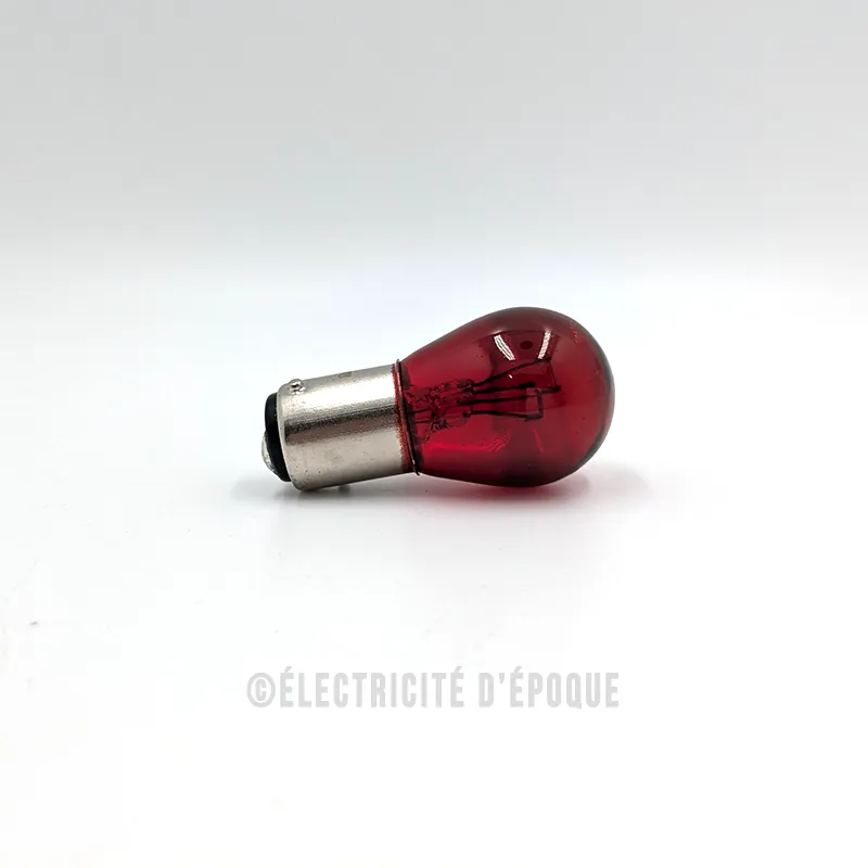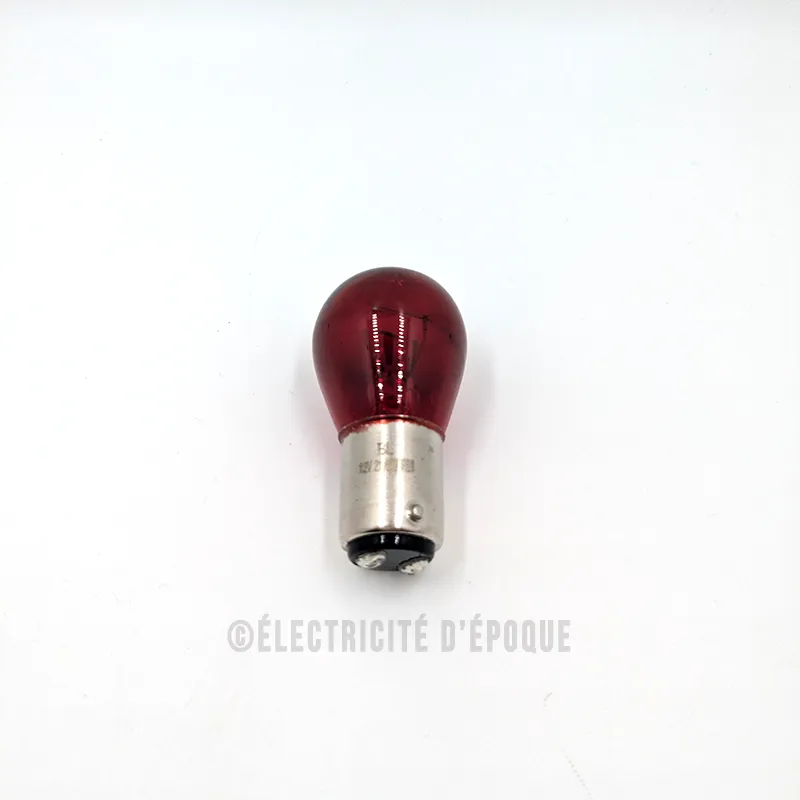 Ampoule rouge 12V 21/5W à culot BAY15d de diamètre 15mm à 2 ergots pour feu de position arrière, feu de stop et clignotants de vehicule ancien 12V.