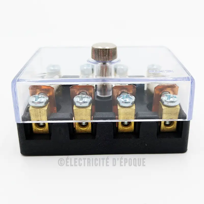 Connexions : La boîte à fusibles possède des bornes pour connecter les fils entrants et sortants.