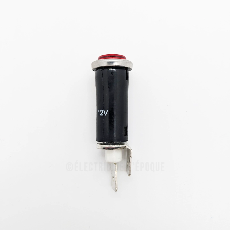 Voyant de contrôle rouge avec ampoule BA7s 12v 2W pour trou de diamètre 13mm – lunette chromée.
